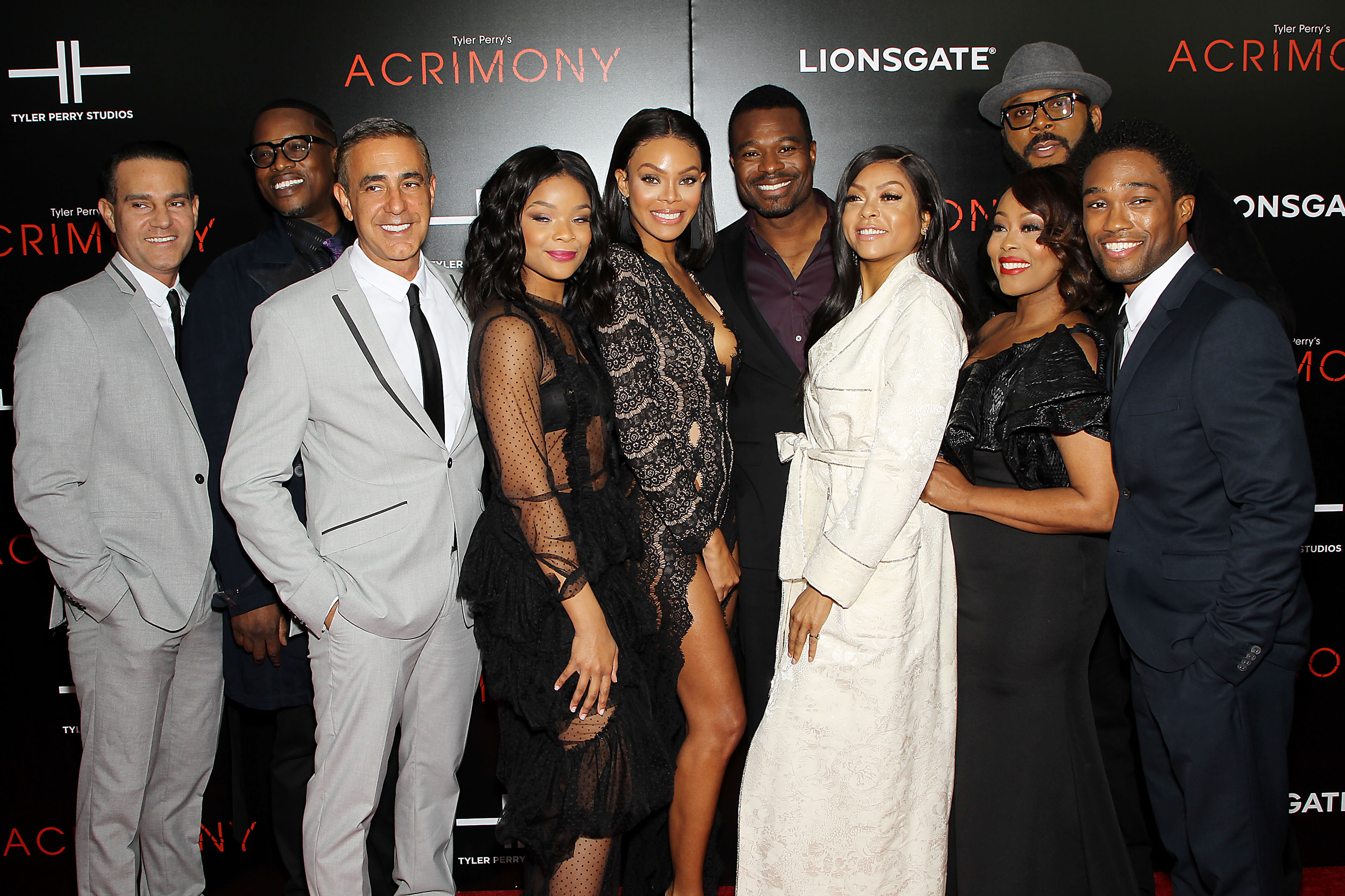 - – New York, NY – 3/27/18 – New York Premiere of Lionsgate New film “Acrimony” -Pictured: Will Areu(Producer), Mark Swinton(Producer), Ozzie Areu(Producer), Ajiona Alexus, Crystle Stewart, Lyriq Bent, Taraji P. Henson, Ptosha Storey, Tyler Perry (Director), Antonio Madison -Photo by: Marion Curtis / StarPix -Location: SVA Theater 23rd St.